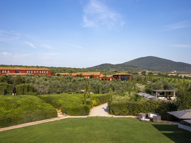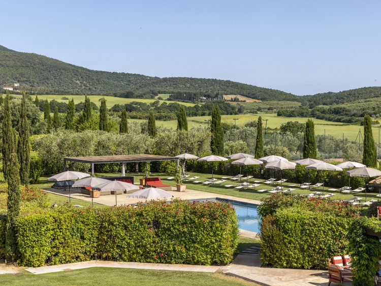 Locanda Rossa war ursprünglich ein Landgut im Stil eines toskanischen Bauernhauses und ist über die Jahre gewachsen, ohne seinen Charme zu verlieren. Es besteht aus einer kleinen Gruppe rot getönter Gebäude, eingebettet in die Landschaft, mit 33 Zimmern und 4 privaten Villen. Die Atmosphäre ist entspannt, und die Lage ganz im Süden der wilden Maremma ist für sich schon ein Argument. Mit der Zeit kamen Innen und Außenbereiche zum Essen und Verweilen hinzu, ein zweiter Pool, 20 neue Zimmer und Suiten und zuletzt ein vielseitig nutzbarer Eventbereich. Der Look ist modern, der Rahmen traditionell, und genau das funktioniert hervorragend.