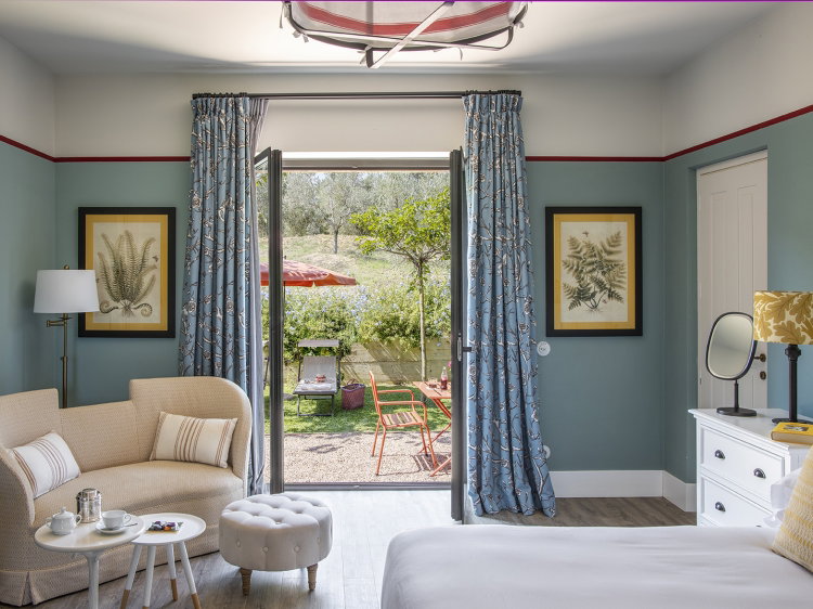 Die Zimmer mit einem dezent femininen Stil sind sehr gut ausgestattet und bieten viele angenehme Details, etwa Espressomaschine und Wasserkocher, Wasser und Schokolade als kleine Aufmerksamkeit, großzügige Bäder im Wet Room Stil, Bademäntel und hauseigene Pflegeprodukte. Viele verfügen über einen privaten Garten, und die Suiten mit zwei Schlafzimmern haben eine Kitchenette, was zusätzlichen Spielraum schafft.